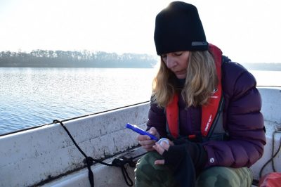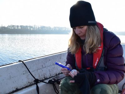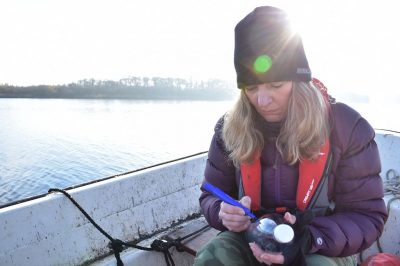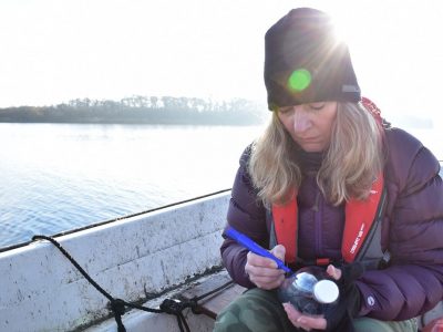 Using a digital compass, find the precise location of the first area where you will conduct your water sampling. By revisiting the same locations over a prolonged period, you are improving the accuracy of your results. At each location, anchor your boat to the bed of the broad, so you don’t drift away!
